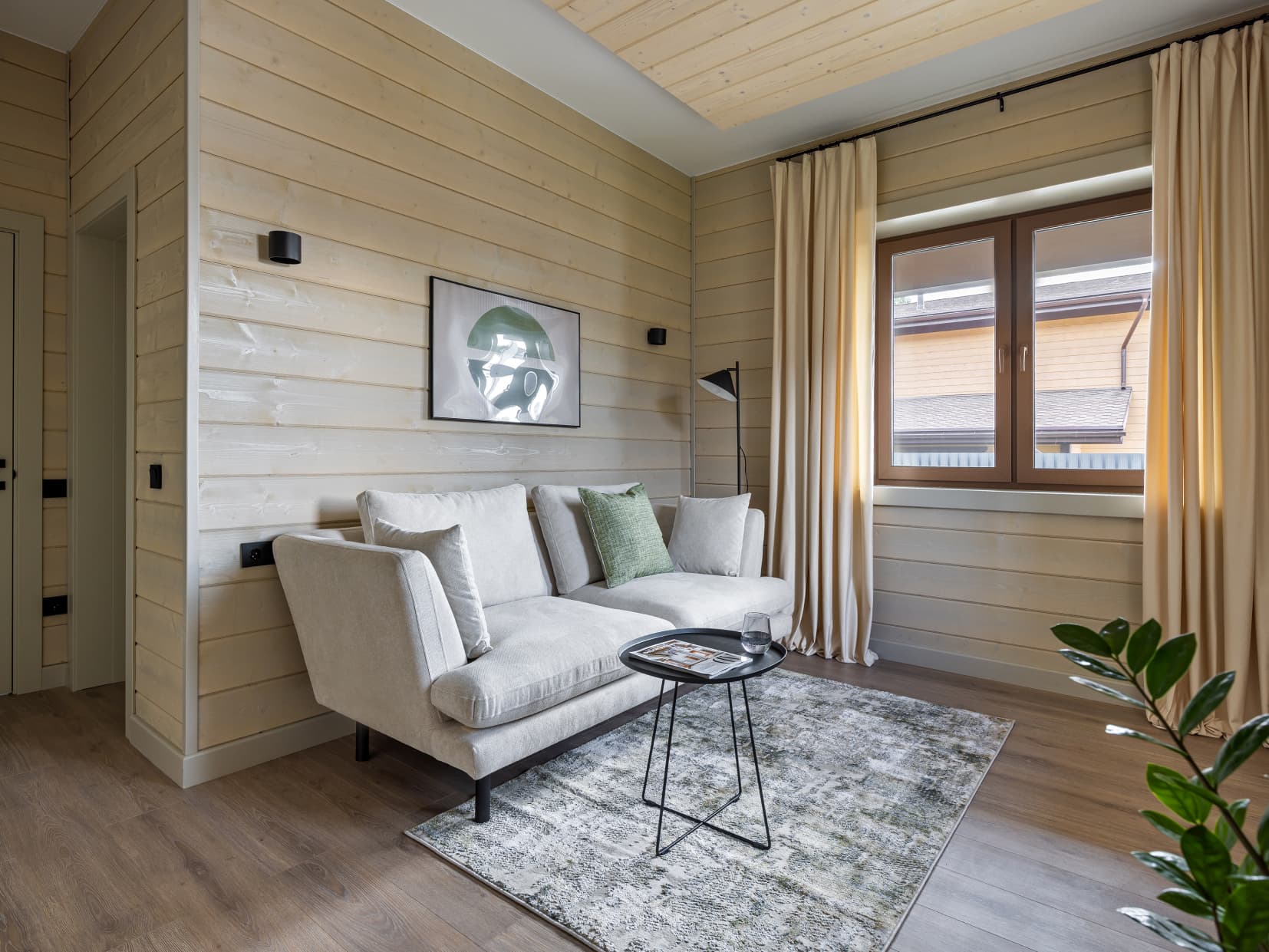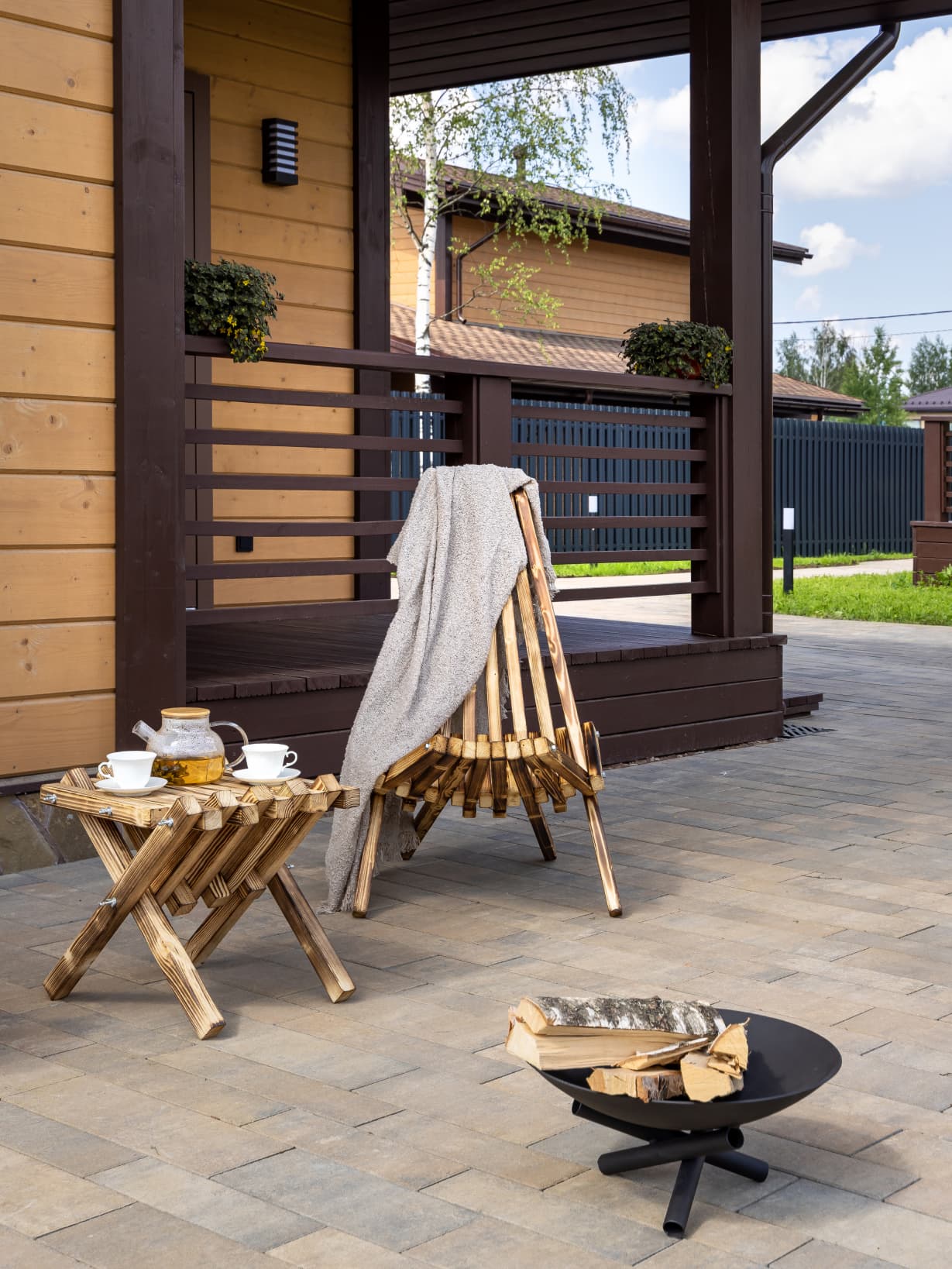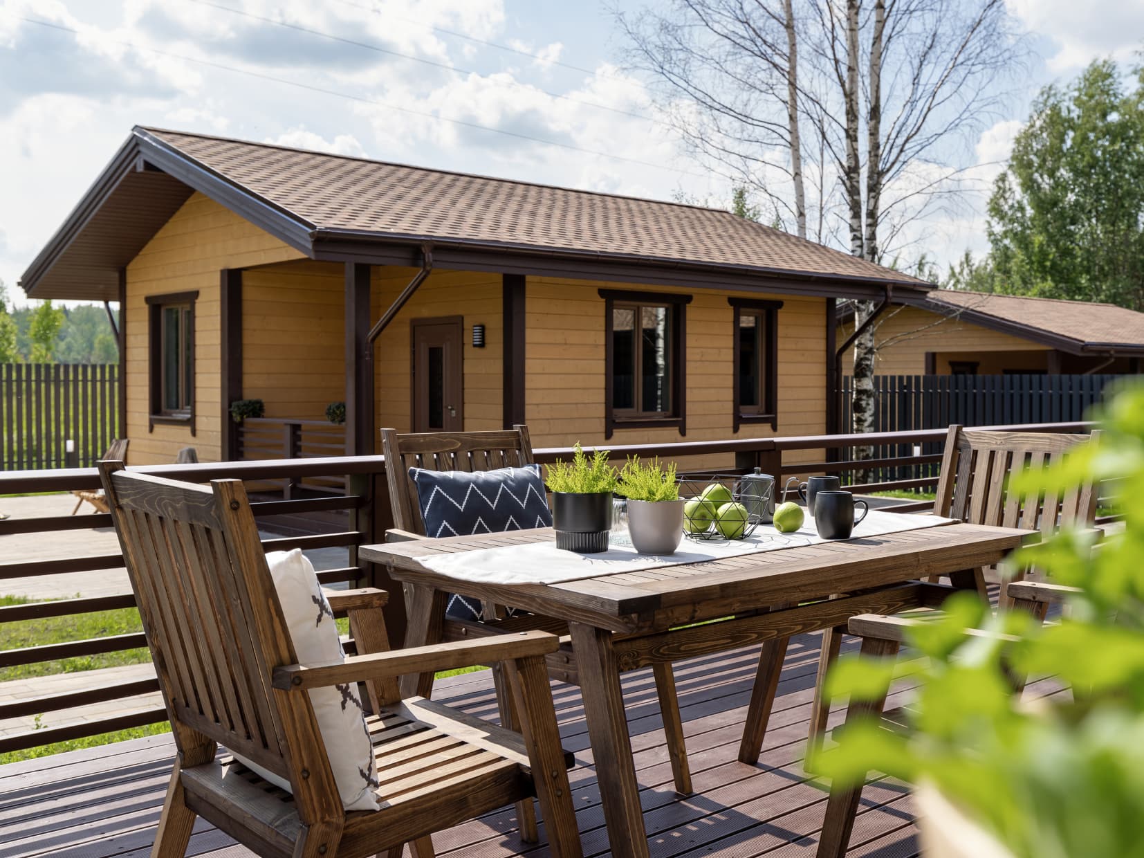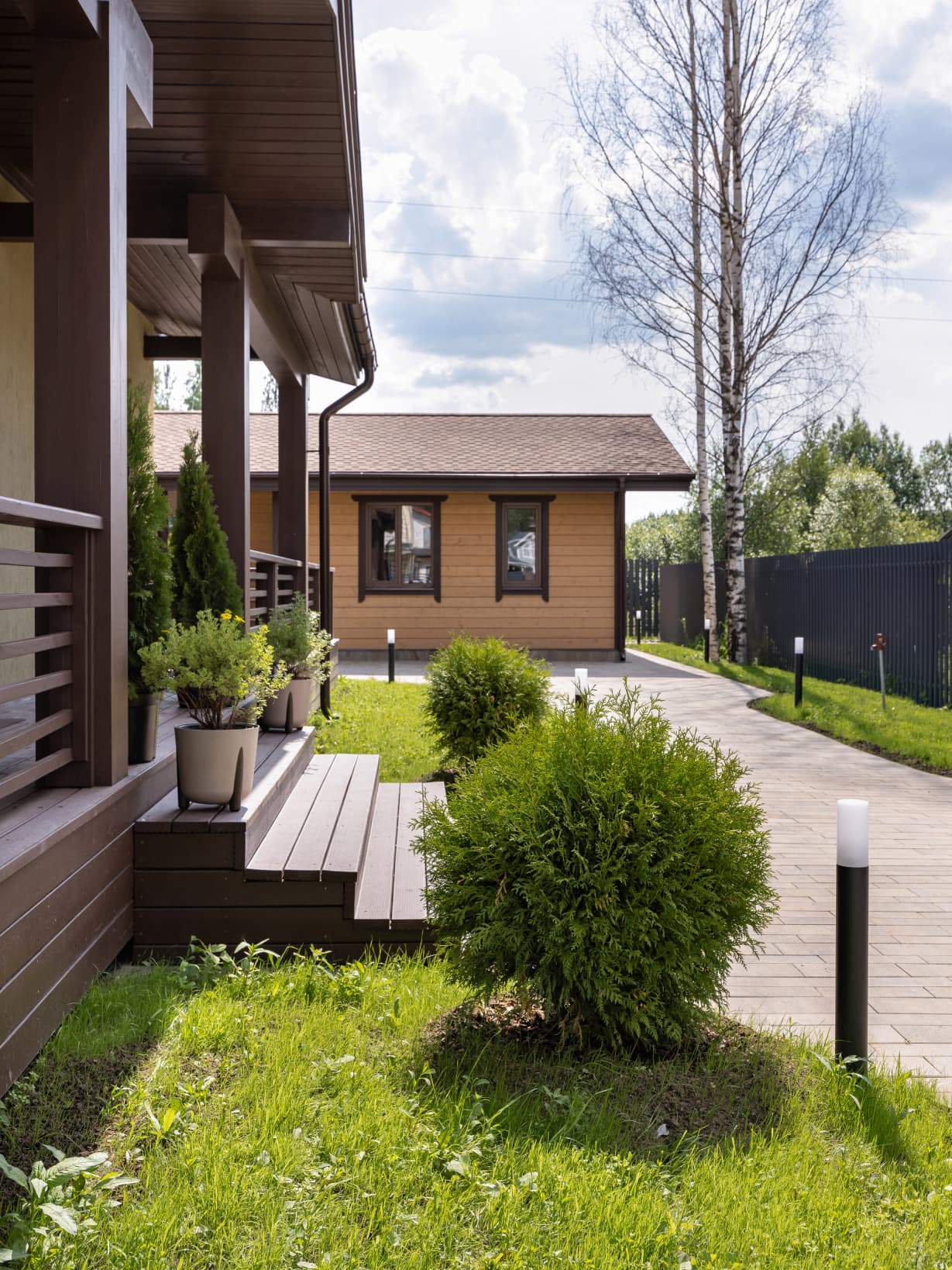 Это дом, в котором просто хочется быть. Гулять босыми ногами по залитому солнцем деревянному полу, накрывать на веранде стол и звать всю семью на завтрак. Либо укутаться в плед и смотреть, как по окнам стекают капли тёплого дождя. Париться в бане, где так вкусно пахнет можжевельником, а потом сидеть у костра и пить чай с чабрецом. А вечером расходиться по своим уютным спальнями, в ожидании нового дня.