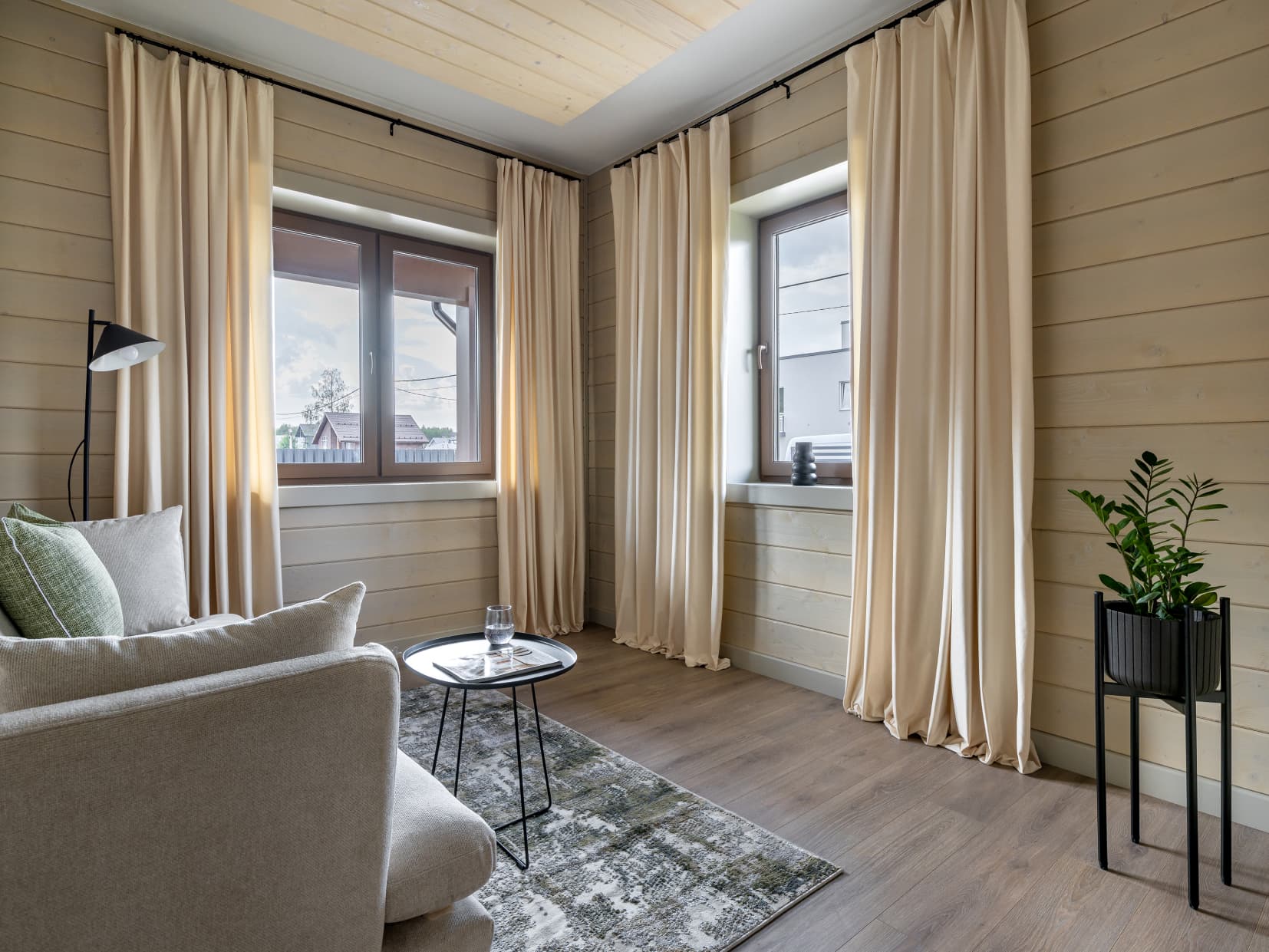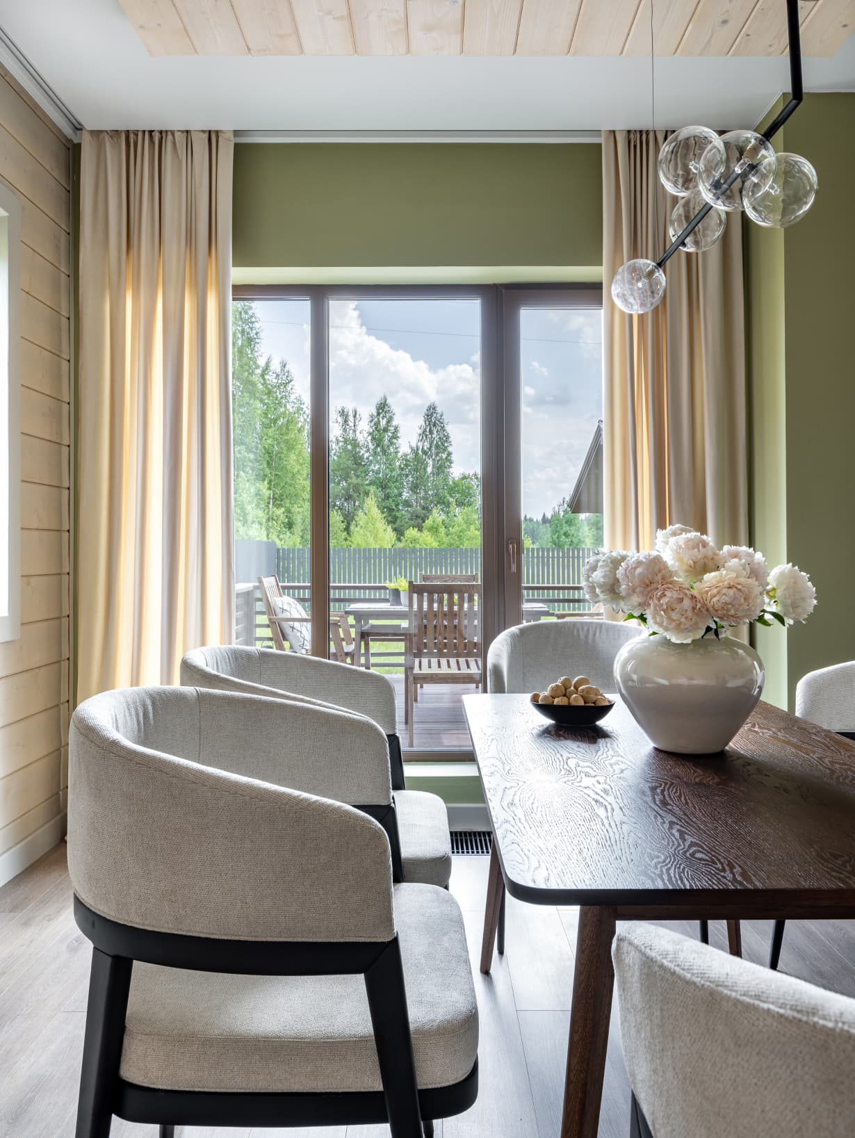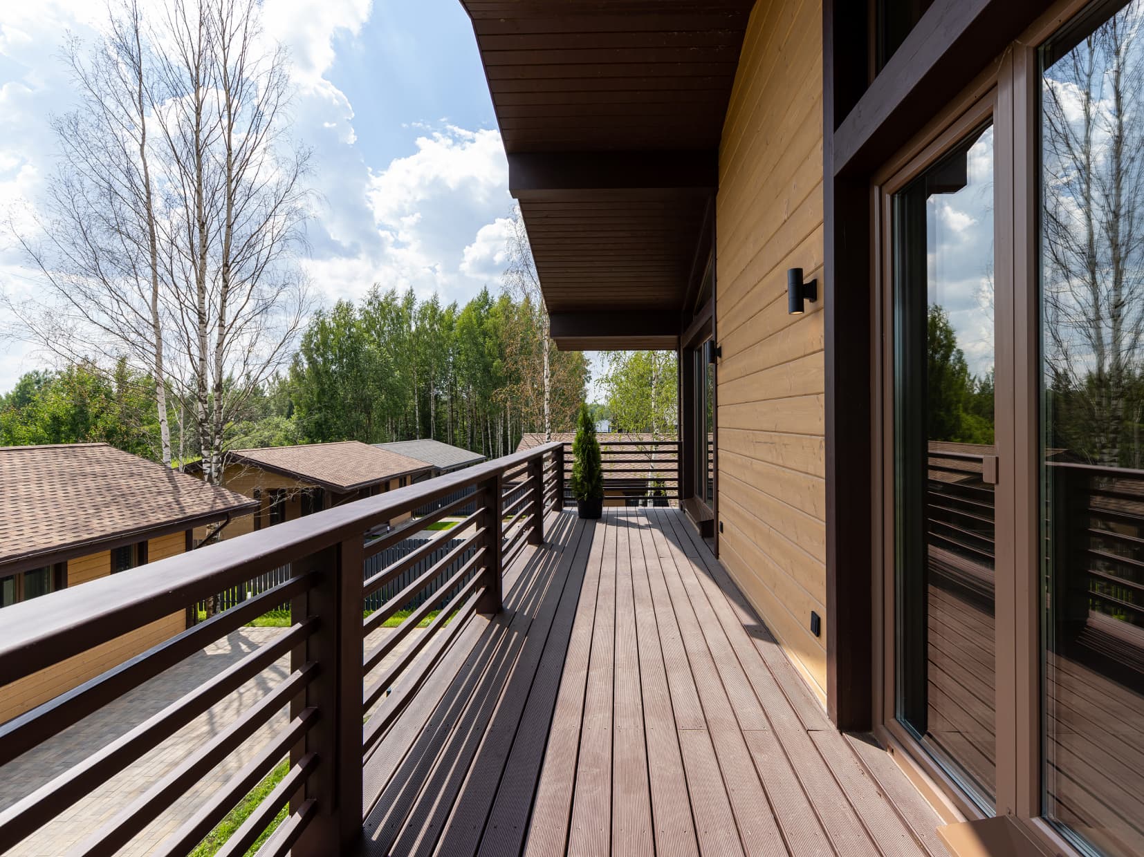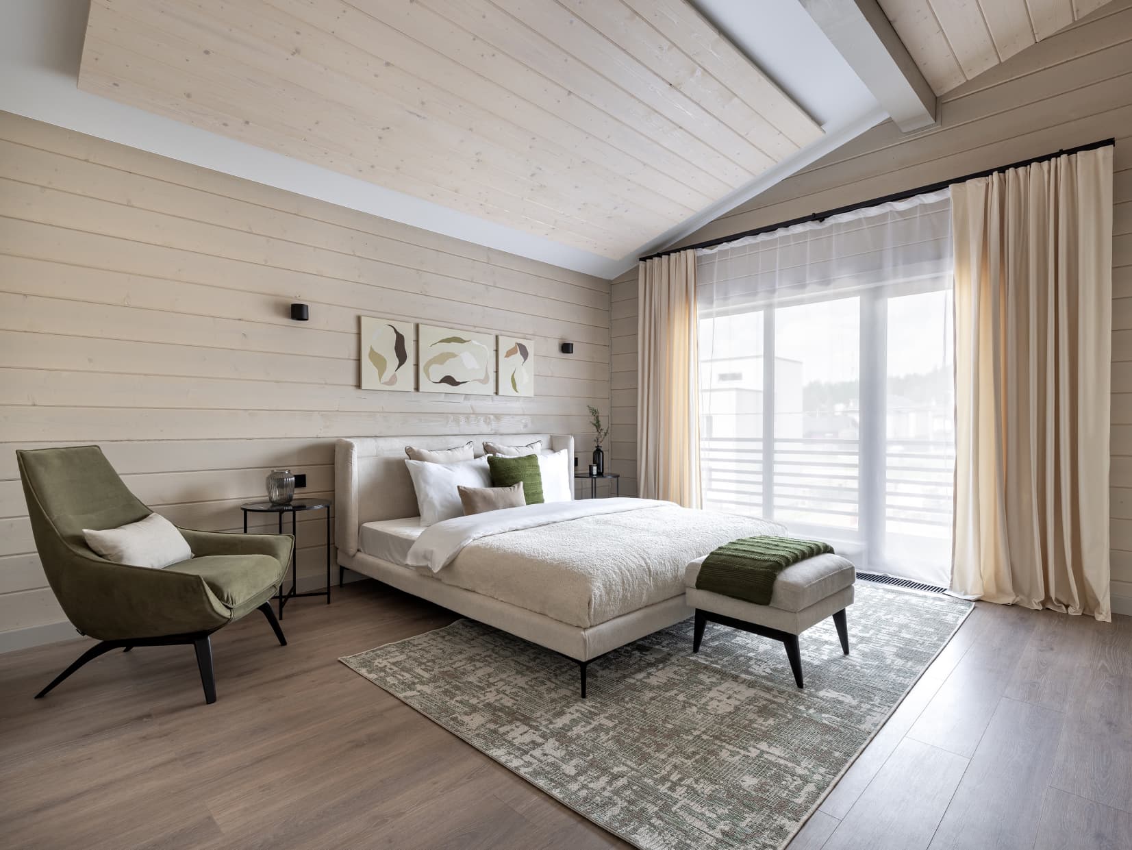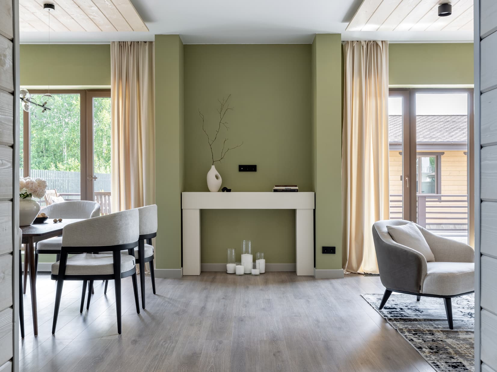 Это дом, в котором просто хочется быть. Гулять босыми ногами по залитому солнцем деревянному полу, накрывать на веранде стол и звать всю семью на завтрак. Либо укутаться в плед и смотреть, как по окнам стекают капли тёплого дождя. Париться в бане, где так вкусно пахнет можжевельником, а потом сидеть у костра и пить чай с чабрецом. А вечером расходиться по своим уютным спальнями, в ожидании нового дня.