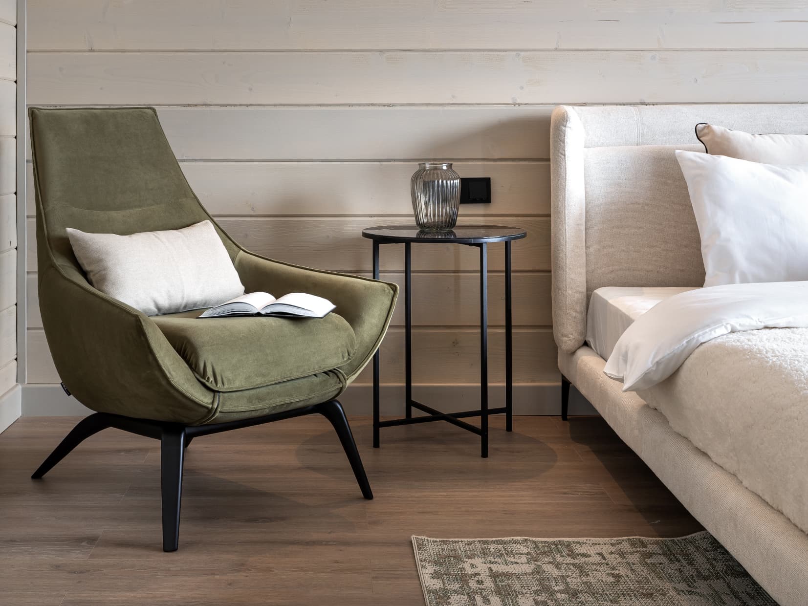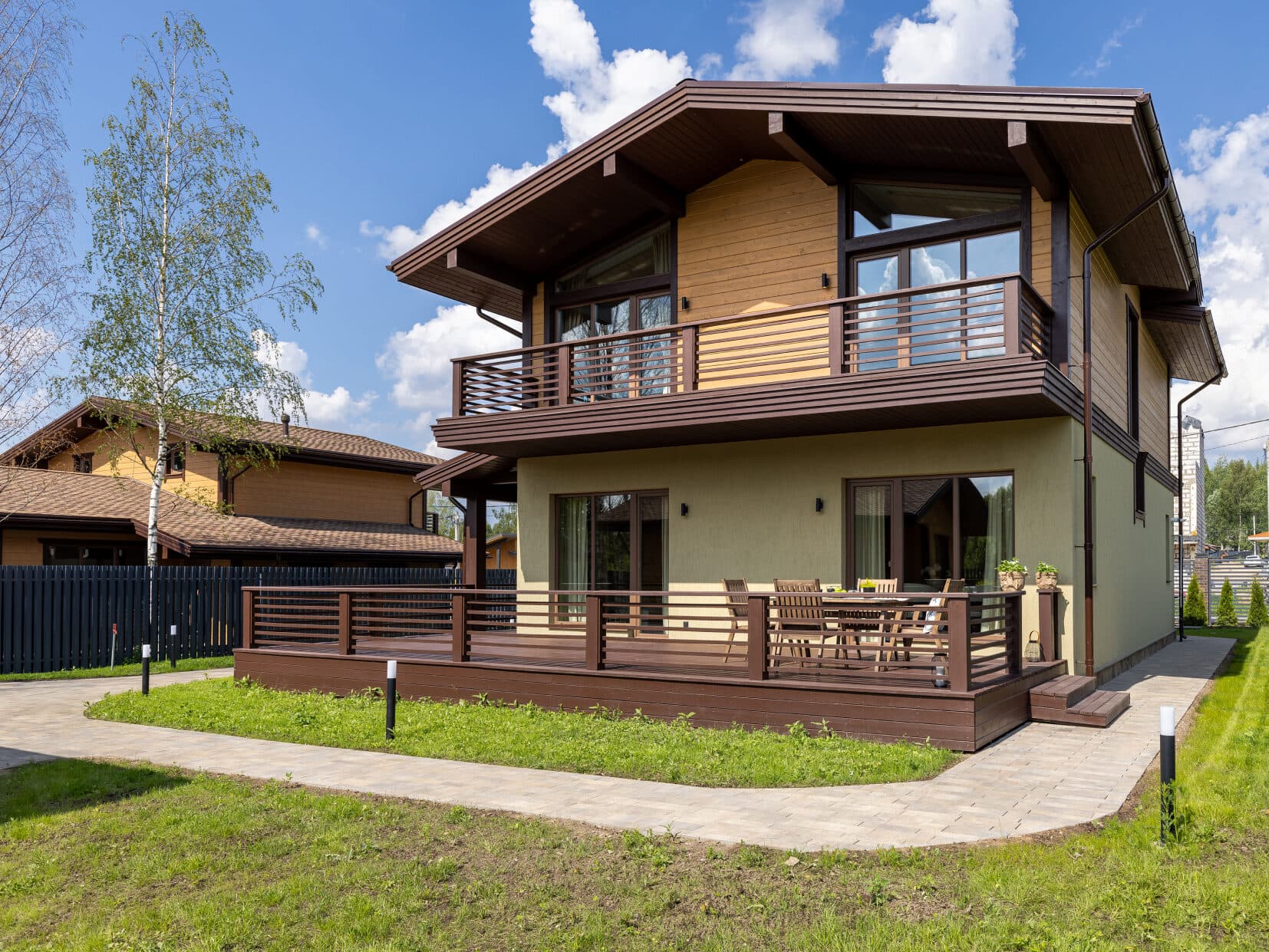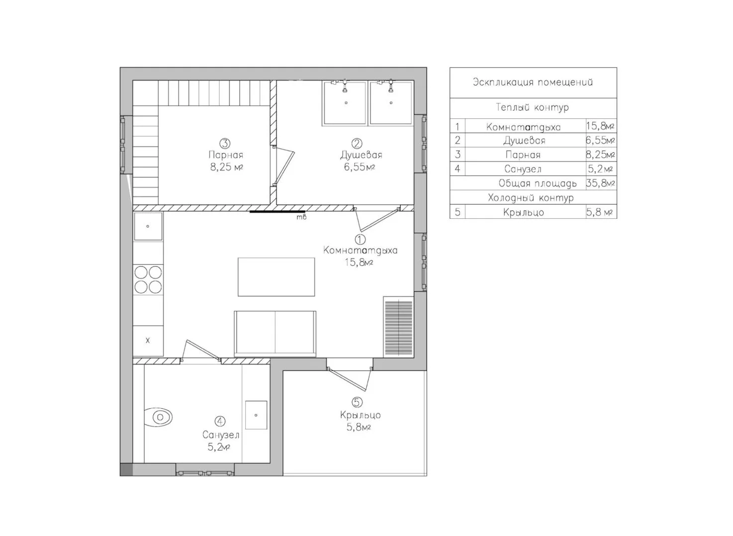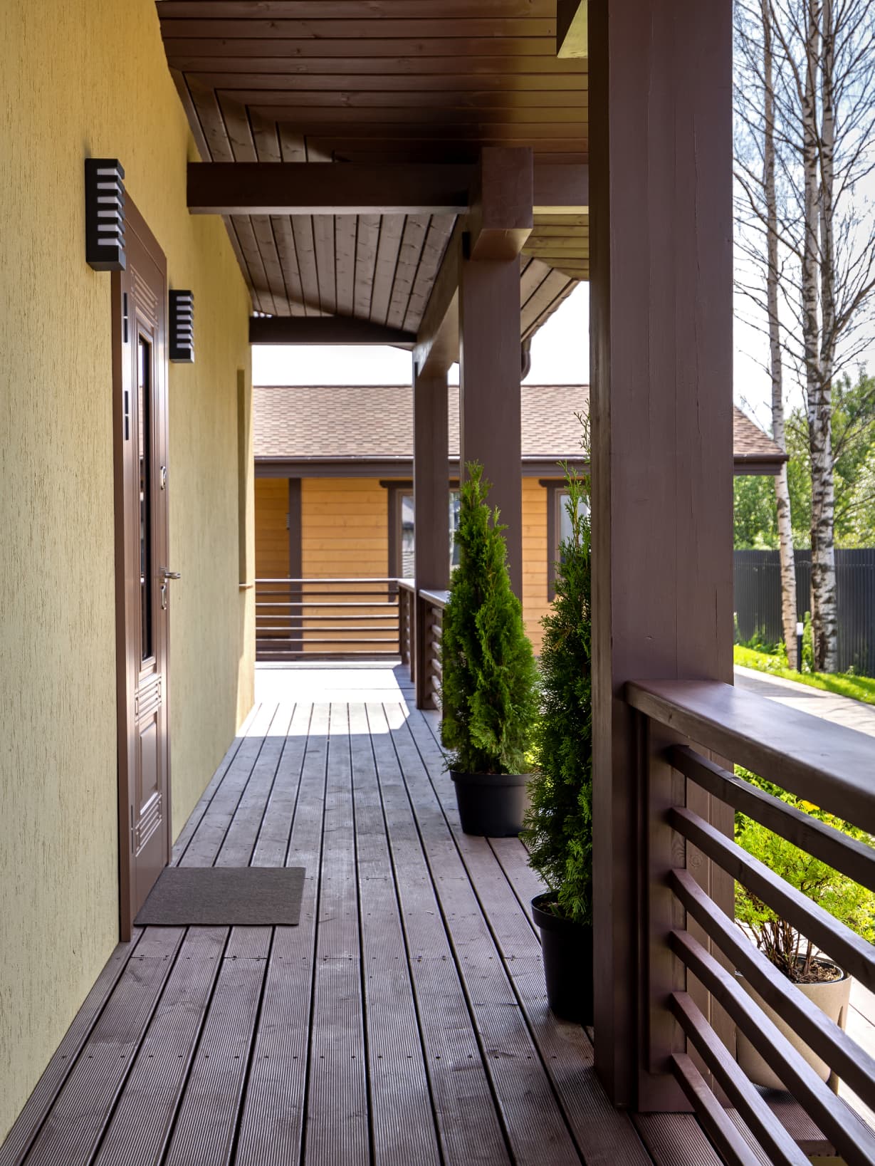 Это дом, в котором просто хочется быть. Гулять босыми ногами по залитому солнцем деревянному полу, накрывать на веранде стол и звать всю семью на завтрак. Либо укутаться в плед и смотреть, как по окнам стекают капли тёплого дождя. Париться в бане, где так вкусно пахнет можжевельником, а потом сидеть у костра и пить чай с чабрецом. А вечером расходиться по своим уютным спальнями, в ожидании нового дня.